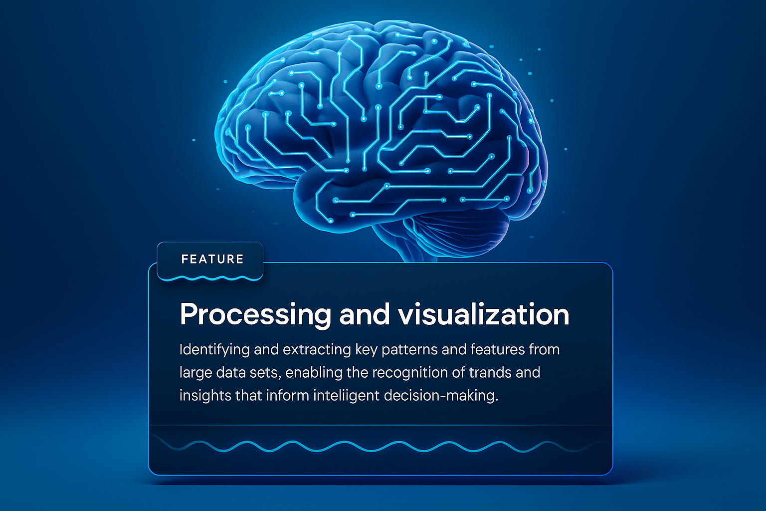 /Collection: /by davooda/Type: PNG/A vibrant 3D illustration of a human brain intertwined with a neural network, showcasing intelligent processing and big data visualization. It features a gradient background and a text block highlighting data processing.