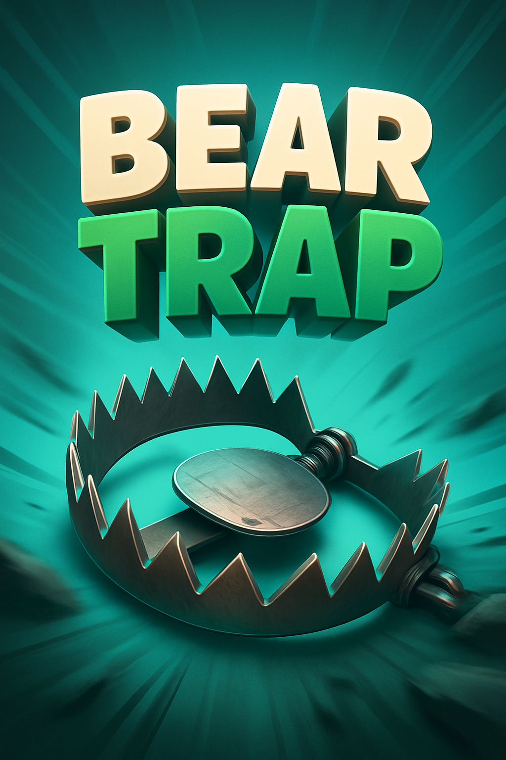A visually striking 3D illustration of a bear trap, featuring bold, layered typography. The dynamic angle and gradient background create an engaging composition.
