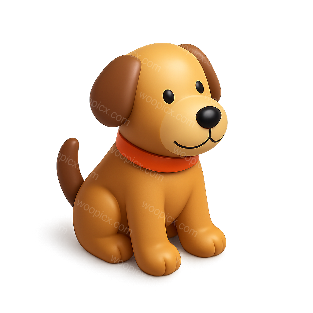 A friendly 3D dog icon featuring a cartoon-like dog with a brown body and orange collar, set against a soft gradient background, showcasing a three-quarter view.