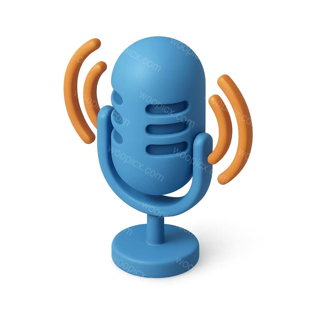 /Premium/Collection: /by davooda/Type: PNG/A vibrant 3D podcast microphone icon featuring a blue microphone with orange sound waves emanating from it. The design has a transparent background and showcases a three-quarter isometric view.