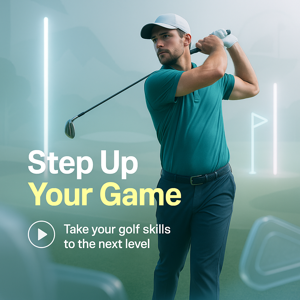 Dynamic promotional graphic for golf training featuring a golfer in action, designed to inspire and engage enthusiasts looking to improve their skills.