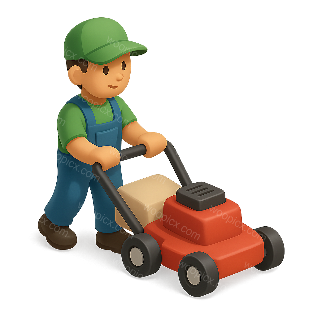 3D Lawn Care Icon Featuring a Specialist with a Mower