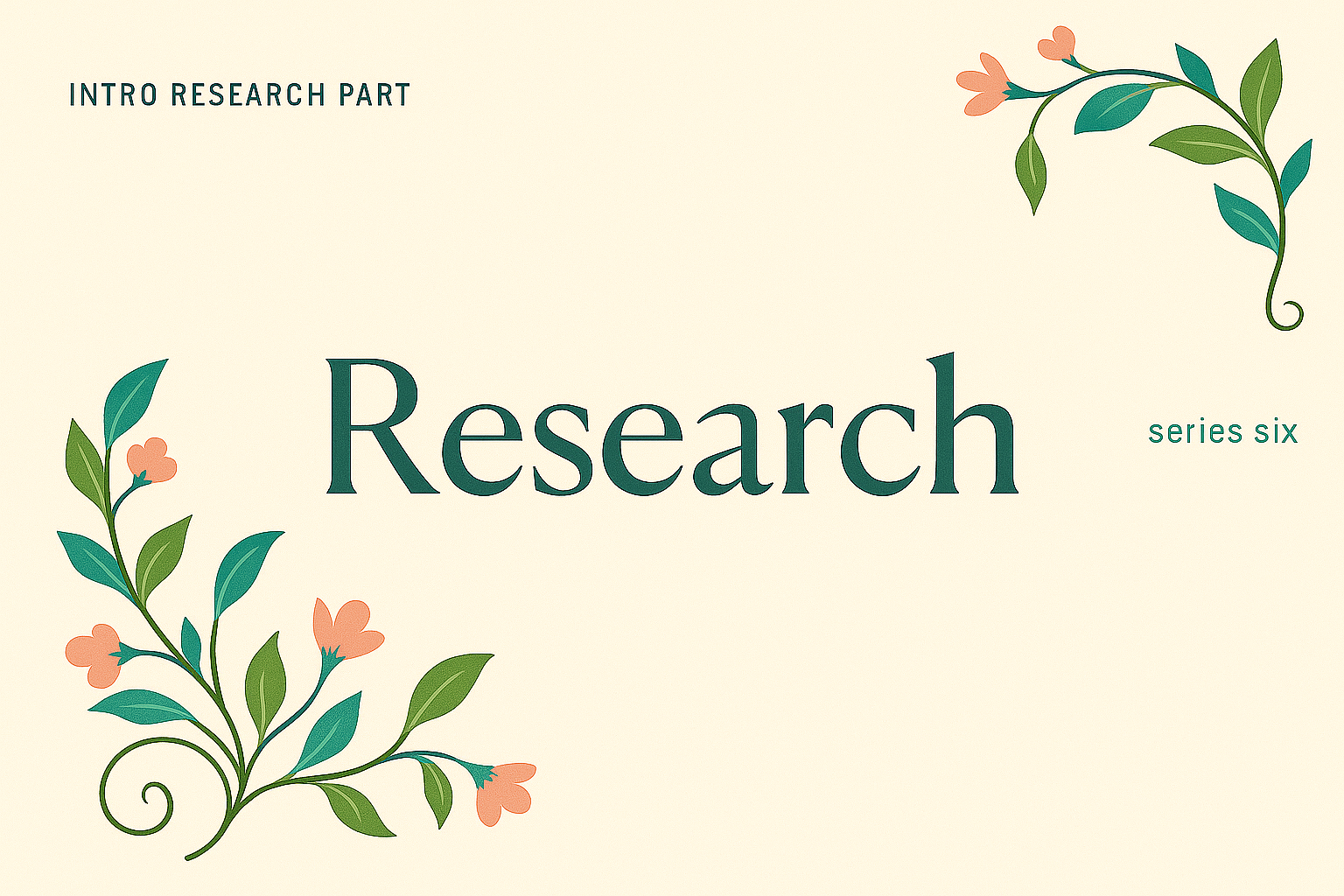 This image features intricate floral patterns in soft colors surrounding the word 'Research' in a stylish font. The design exudes a modern and artistic vibe.