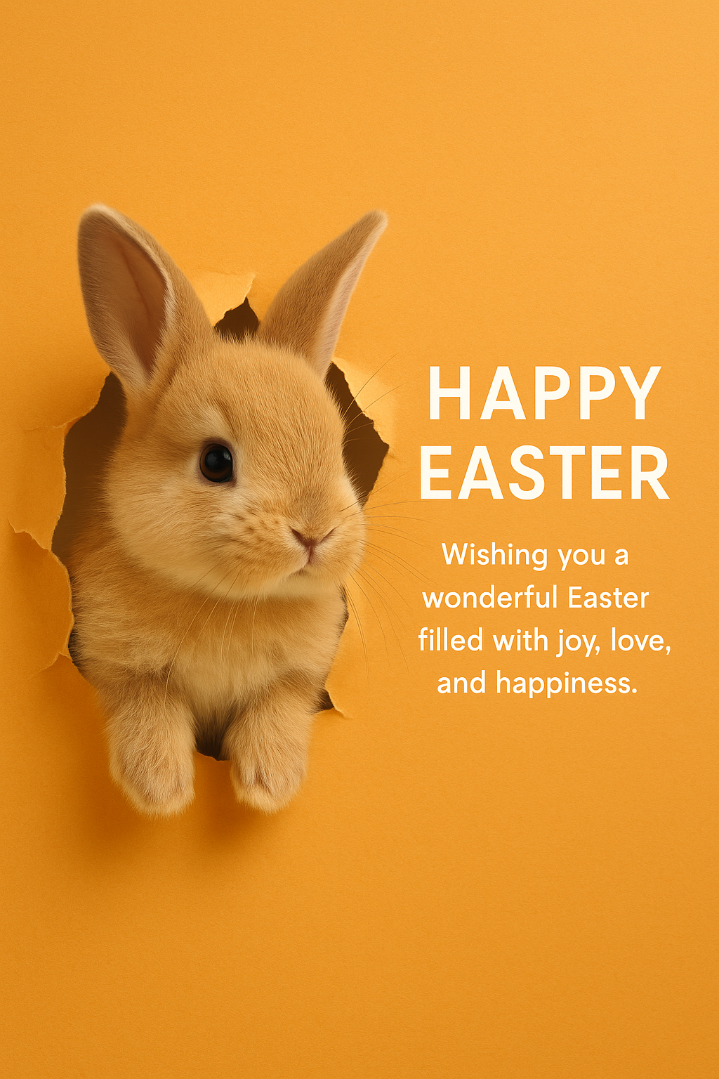 Charming Easter greeting card showcasing an adorable bunny peeking through a vibrant orange background, perfect for festive celebrations and sending warm wishes.