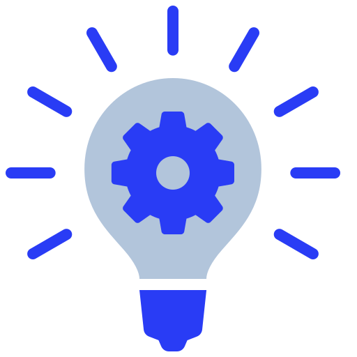 polish-blue simple icon: lightbulb, idea, configuration, inspiration, preferences