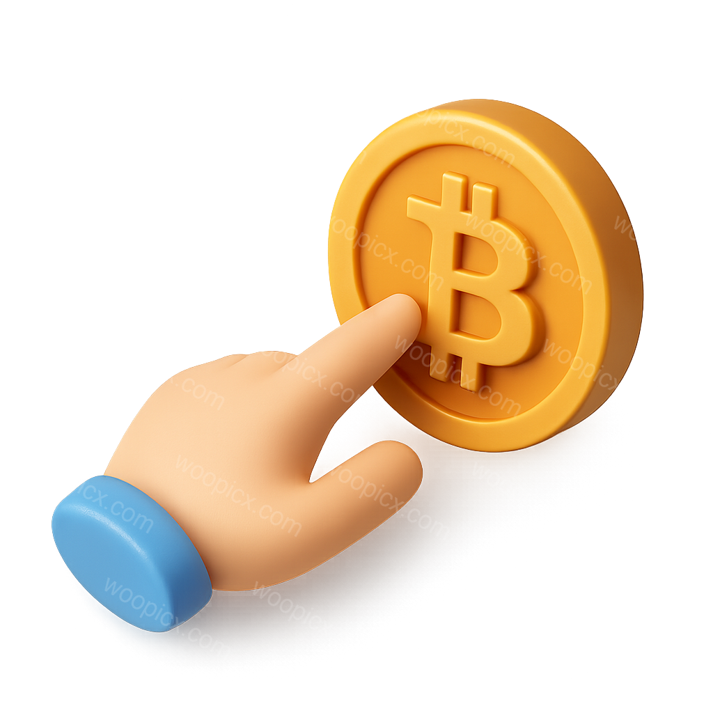 3D Hand Touching a Bitcoin Icon with Isometric Design