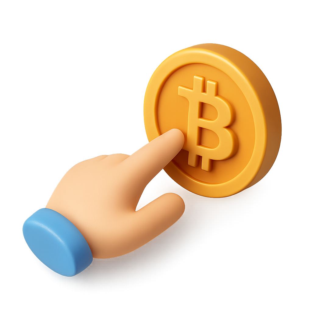 3D Touch Icon Featuring a Hand and Bitcoin Symbol