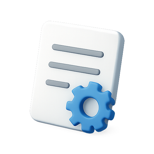 A modern, minimalist icon representing a document with a gear symbol, ideal for tech-related applications or settings menus in digital interfaces.