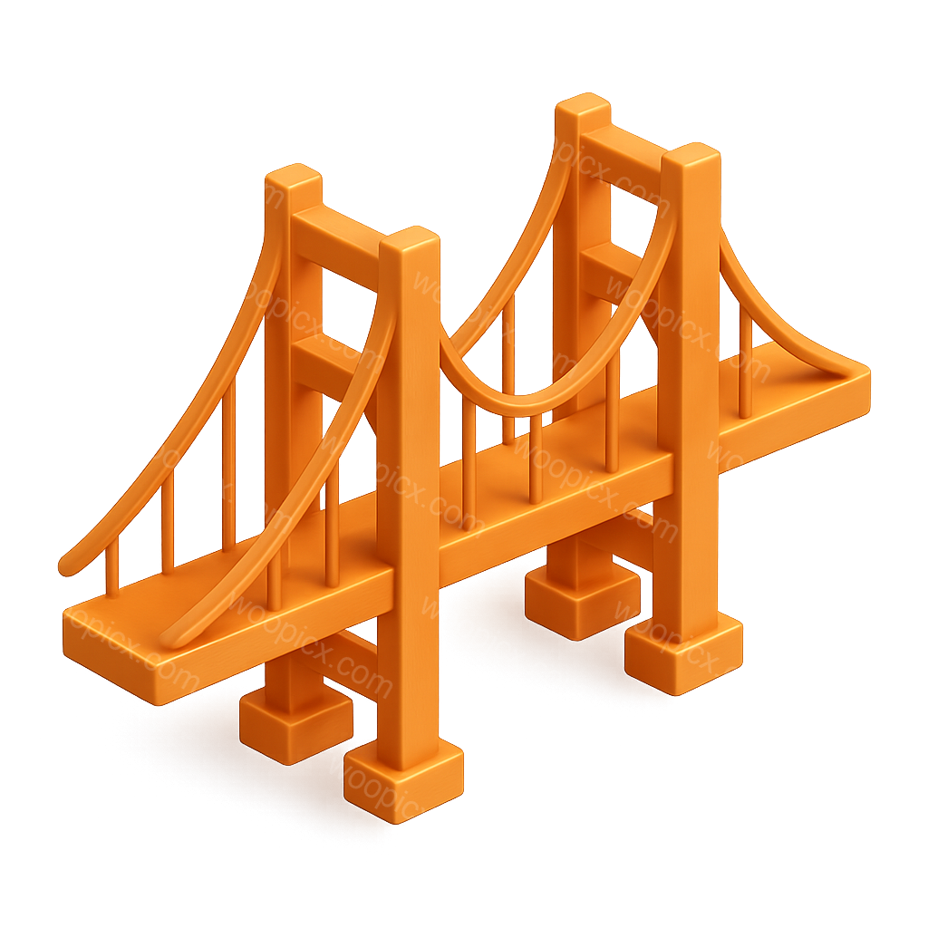 /Premium/Collection: /by davooda/Type: PNG/A visually appealing 3D icon of the Golden Gate Bridge, rendered in orange with a three-quarter isometric view. The design features a transparent background and a volumetric feel.
