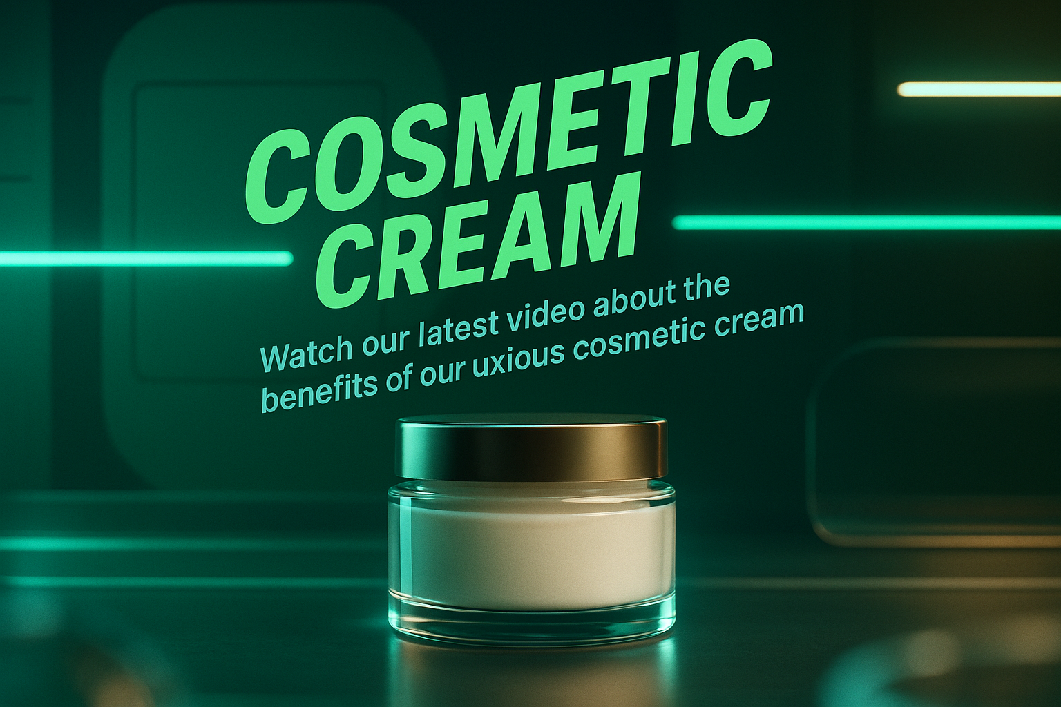 Visually striking promotional graphic featuring a cosmetic cream jar, designed to attract viewers to a video about its benefits. Modern styling with neon elements.