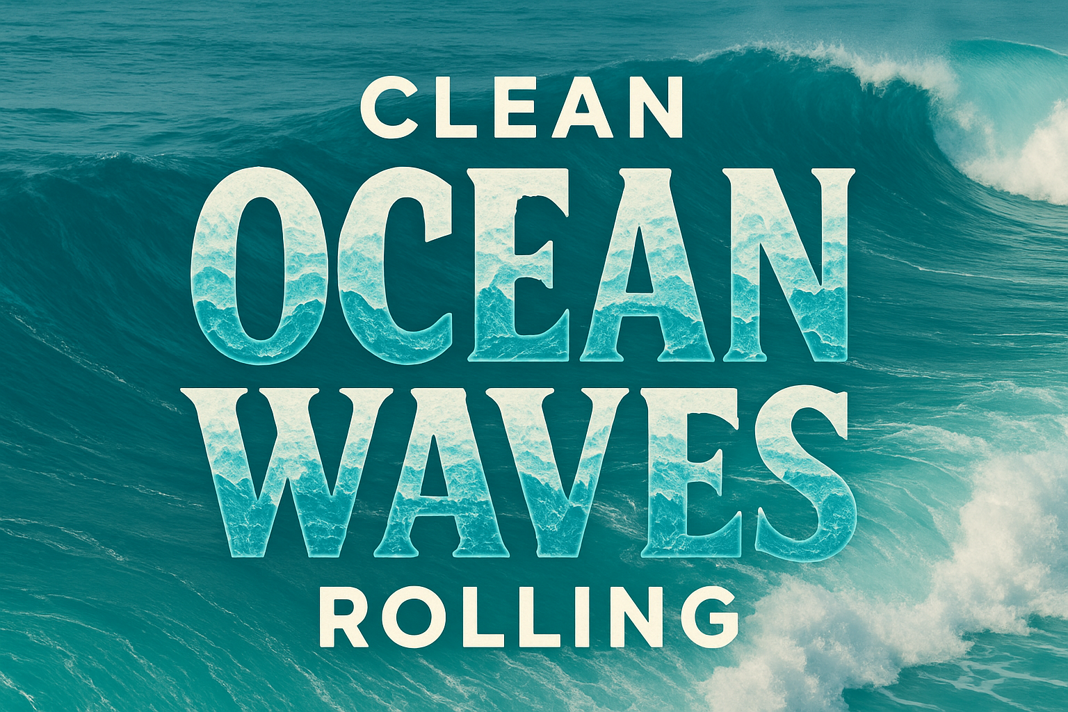 /Collection: /by davooda/Type: PNG/A visually striking graphic featuring ocean waves with bold typography emphasizing the theme of ocean cleanliness. Ideal for environmental campaigns or ocean conservation initiatives.