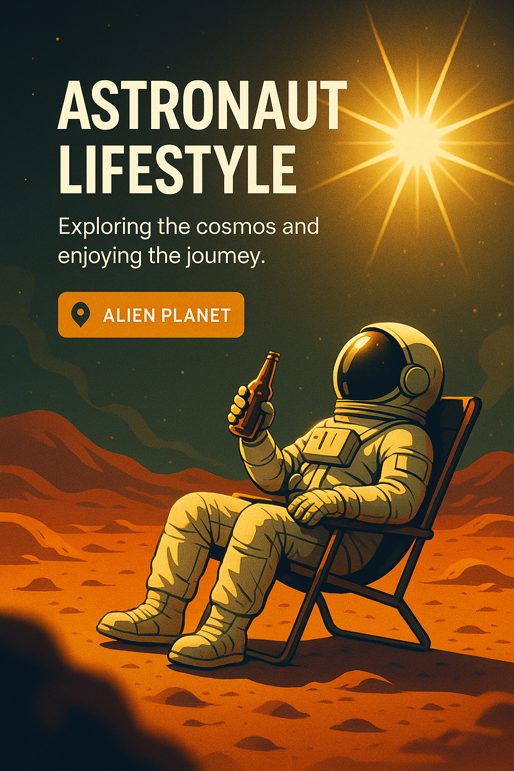 Creative Illustration of an Astronaut Relaxing on an Alien Planet