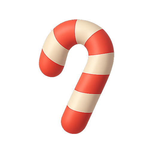 A playful 3D rendering of a candy cane featuring red and white stripes, perfect for festive holiday themes and winter celebrations.