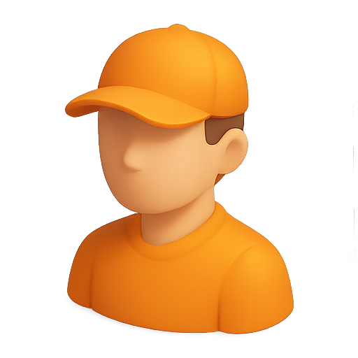 Stylized 3D character icon featuring a person wearing an orange cap and shirt, ideal for use in digital applications, avatars, or branding.