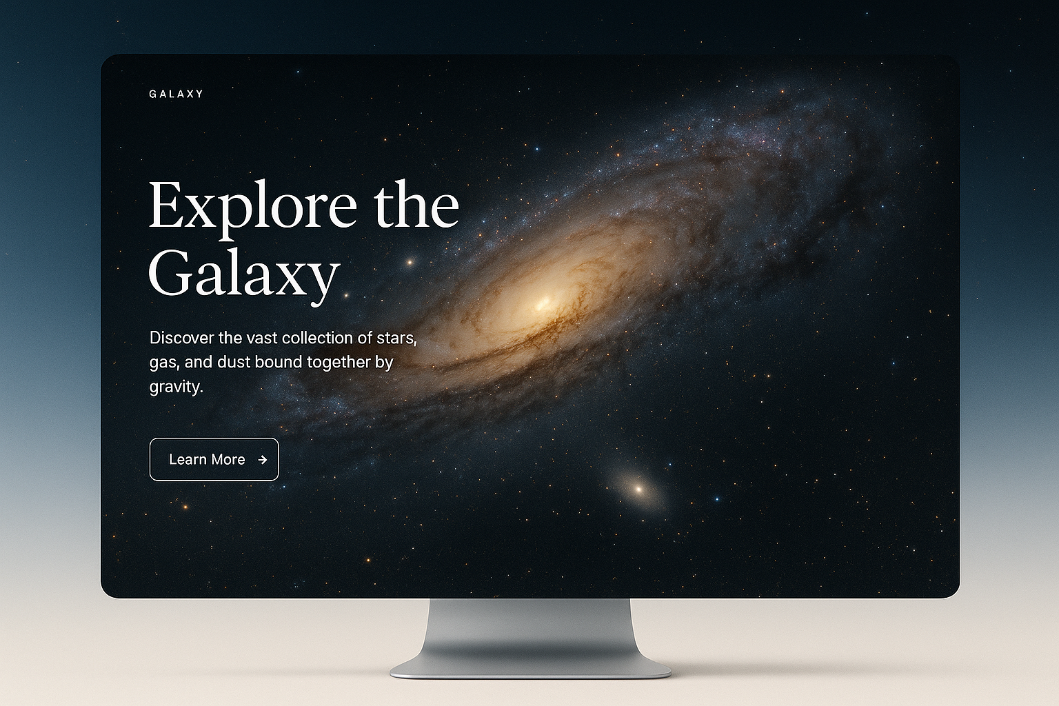 A visually appealing web page design featuring a galaxy theme. Includes a vibrant galaxy background, clear text, and a call-to-action button, all presented in a high-resolution format.