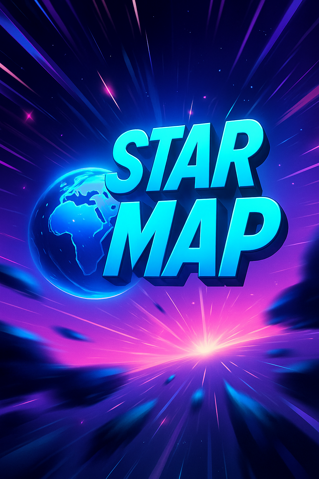 /Collection: /by davooda/Type: PNG/An engaging star map illustration featuring a vibrant cosmic background. The dynamic elements radiate from the globe, with bold typography emphasizing 'STAR MAP' in vivid colors, creating a sense of depth and movement.