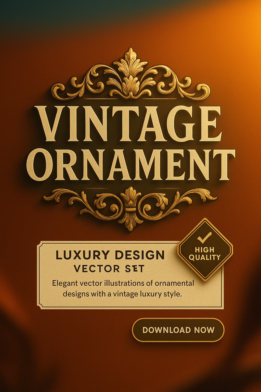 /Collection: /by davooda/Type: PNG/A promotional graphic for a luxury design vector set featuring elegant ornamental designs. The style is vintage and sophisticated, aimed at designers and creatives.