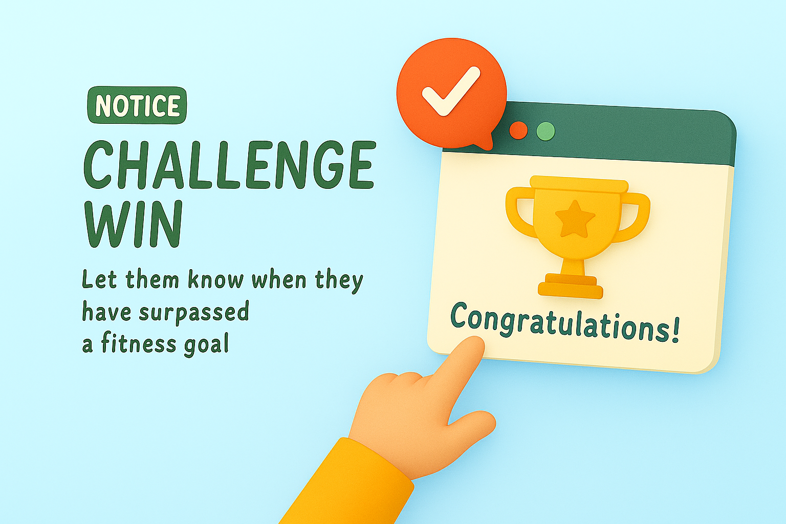 /Collection: /by davooda/Type: PNG/Colorful digital notification graphic celebrating a fitness challenge achievement, featuring a trophy and congratulatory message, ideal for fitness apps or websites.