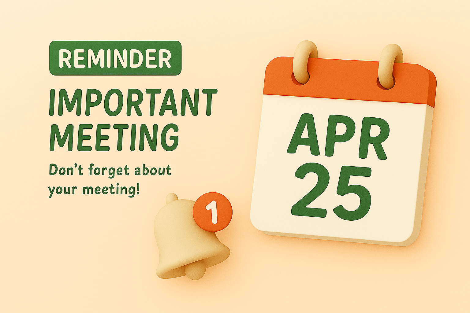 Colorful 3D Meeting Reminder Graphic with Alert Elements