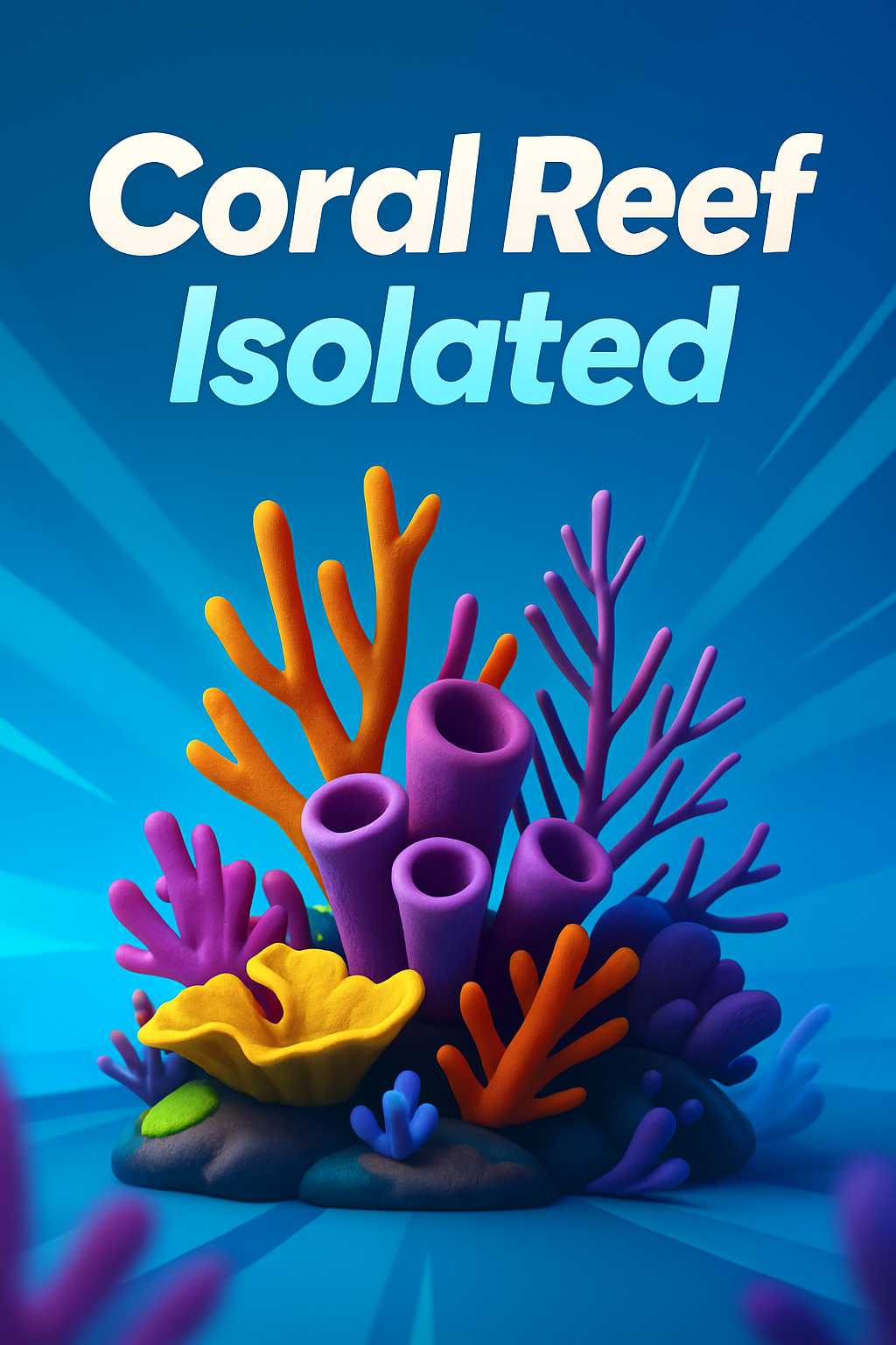 /Collection: /by davooda/Type: PNG/A vibrant 3D illustration of a coral reef, featuring colorful corals in shades of purple, orange, and yellow. The background showcases a smooth gradient, enhancing the dynamic feel of the scene.