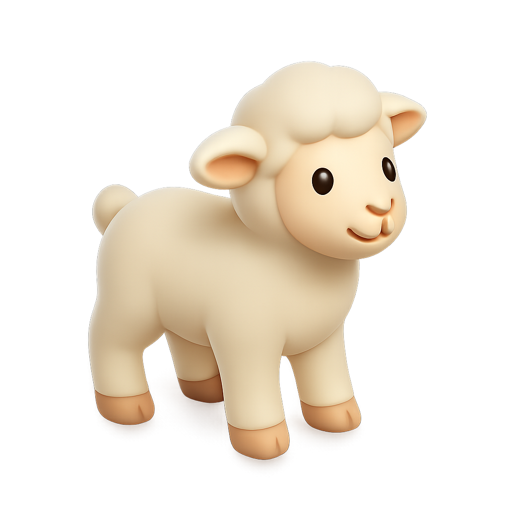 Cute 3D Lamb Icon with Isometric View