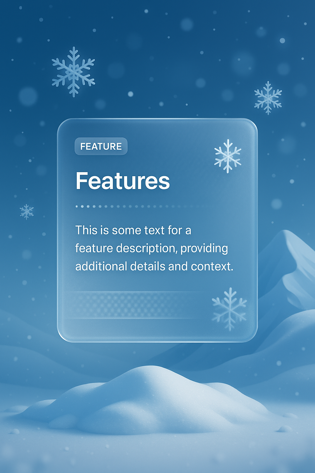 /Collection: /by davooda/Type: PNG/A serene 3D winter landscape featuring gentle snowdrifts and a translucent feature box. Snowflakes fall softly against a gradient blue background, creating a peaceful winter scene.