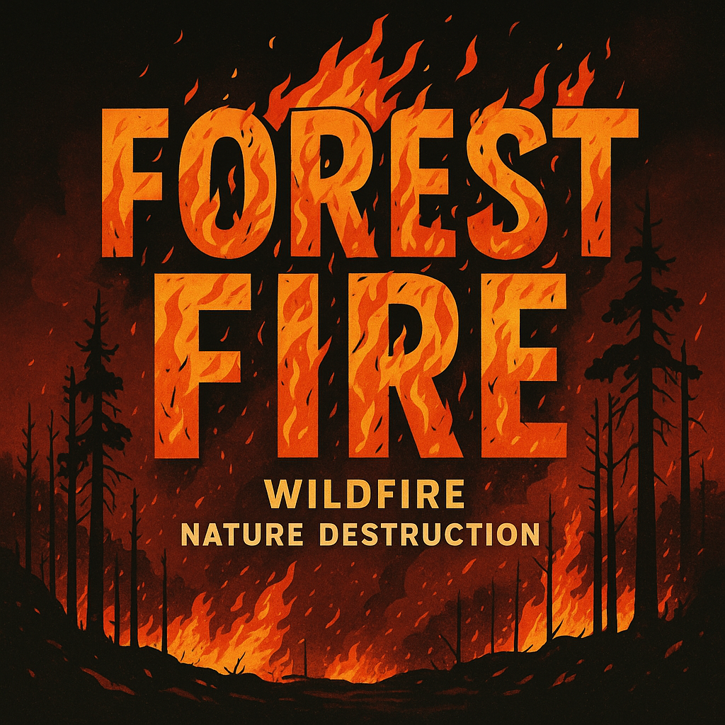 Striking visual representation of a forest fire, showcasing vibrant flames and silhouettes of trees. This graphic serves an educational or awareness-raising purpose regarding environmental issues.