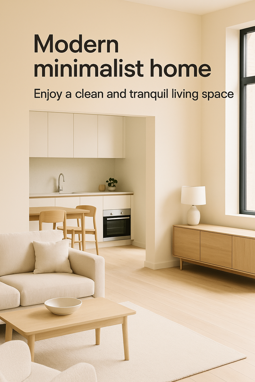 A serene and inviting minimalist living space featuring neutral tones and simple furniture. Ideal for interior design inspiration and home decor marketing.