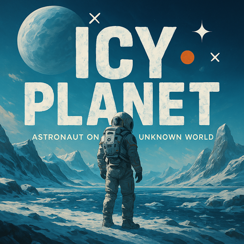 Futuristic Sci-Fi Artwork Featuring an Astronaut on an Icy Planet