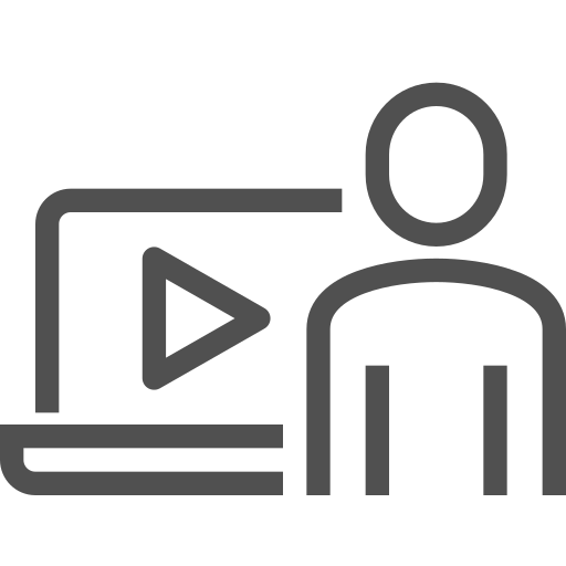 outline simple icon: educational video, e-learning, instructional video, online learning, person watching