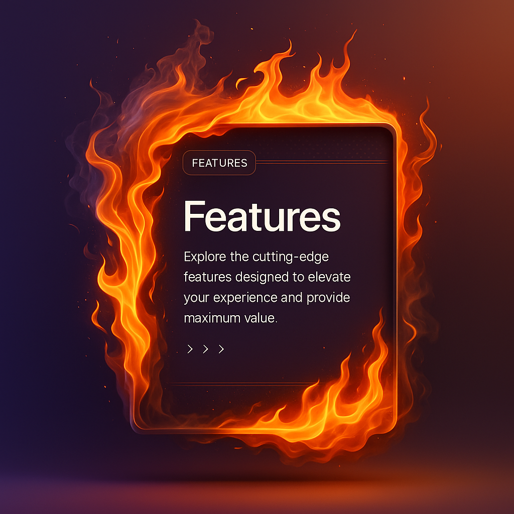 A striking design featuring a border of vibrant flames surrounding a feature block. The background transitions smoothly in gradient colors, enhancing the visual impact.