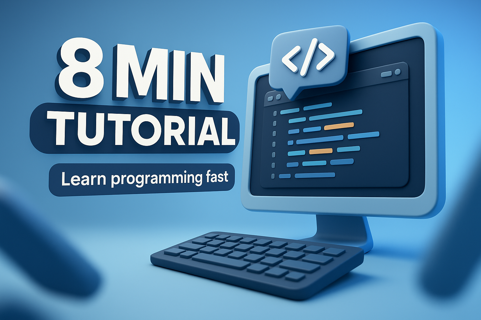 /Collection: /by davooda/Type: PNG/This is a 3D graphic depicting a computer screen with code snippets, designed for a programming tutorial. It targets learners seeking quick and efficient learning methods.