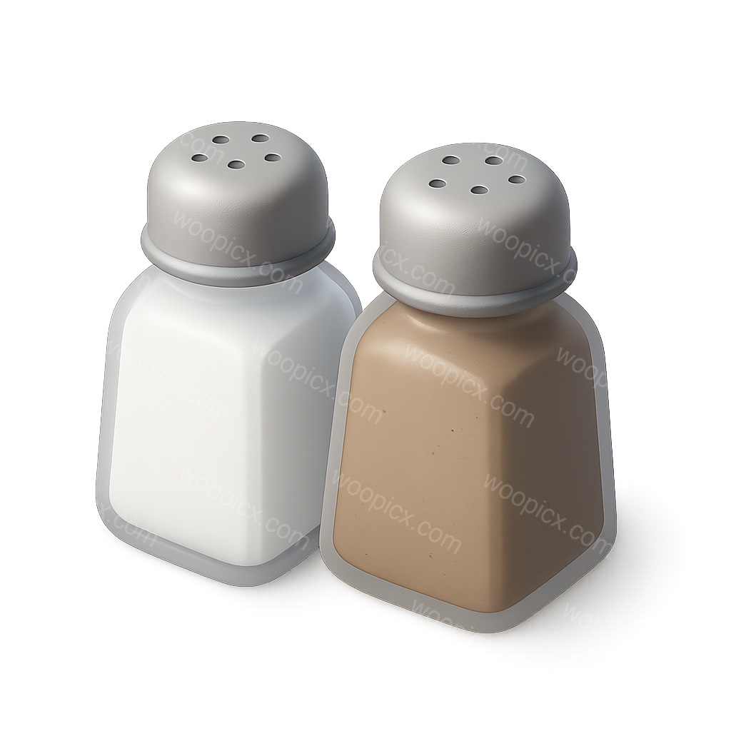 /Premium/Collection: /by davooda/Type: PNG/A pair of 3D salt and pepper shakers depicted in a three-quarter view. The shakers feature a glossy metallic top and clear glass body, creating a volumetric effect on a subtle gradient background.