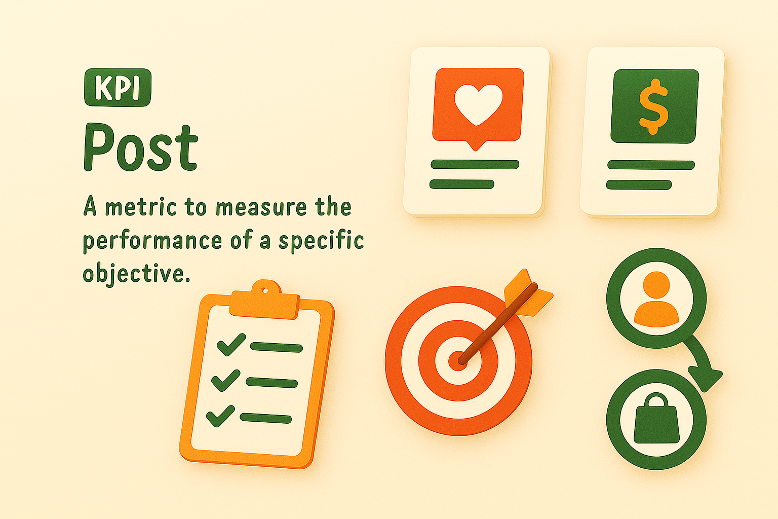 A visually appealing infographic illustrating KPIs with icons and simple text, ideal for educational or business presentations on performance metrics.