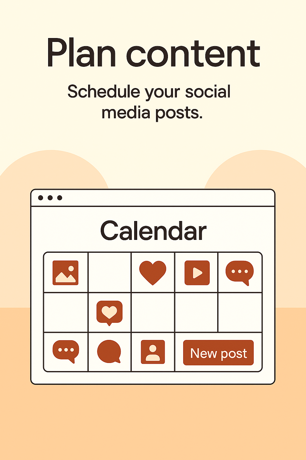 Illustrative graphic depicting a calendar interface for scheduling social media posts, designed with a clean and minimalistic aesthetic suitable for digital marketing.