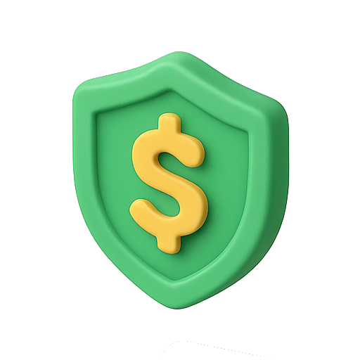 /Collection: /by davooda/Type: PNG/A vibrant 3D icon featuring a green shield with a yellow dollar sign, symbolizing financial protection and security. Ideal for finance-related applications or websites.