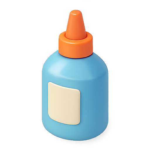 A stylized graphic of a blue glue bottle with an orange cap, featuring a blank label. Ideal for educational materials or craft-related content.