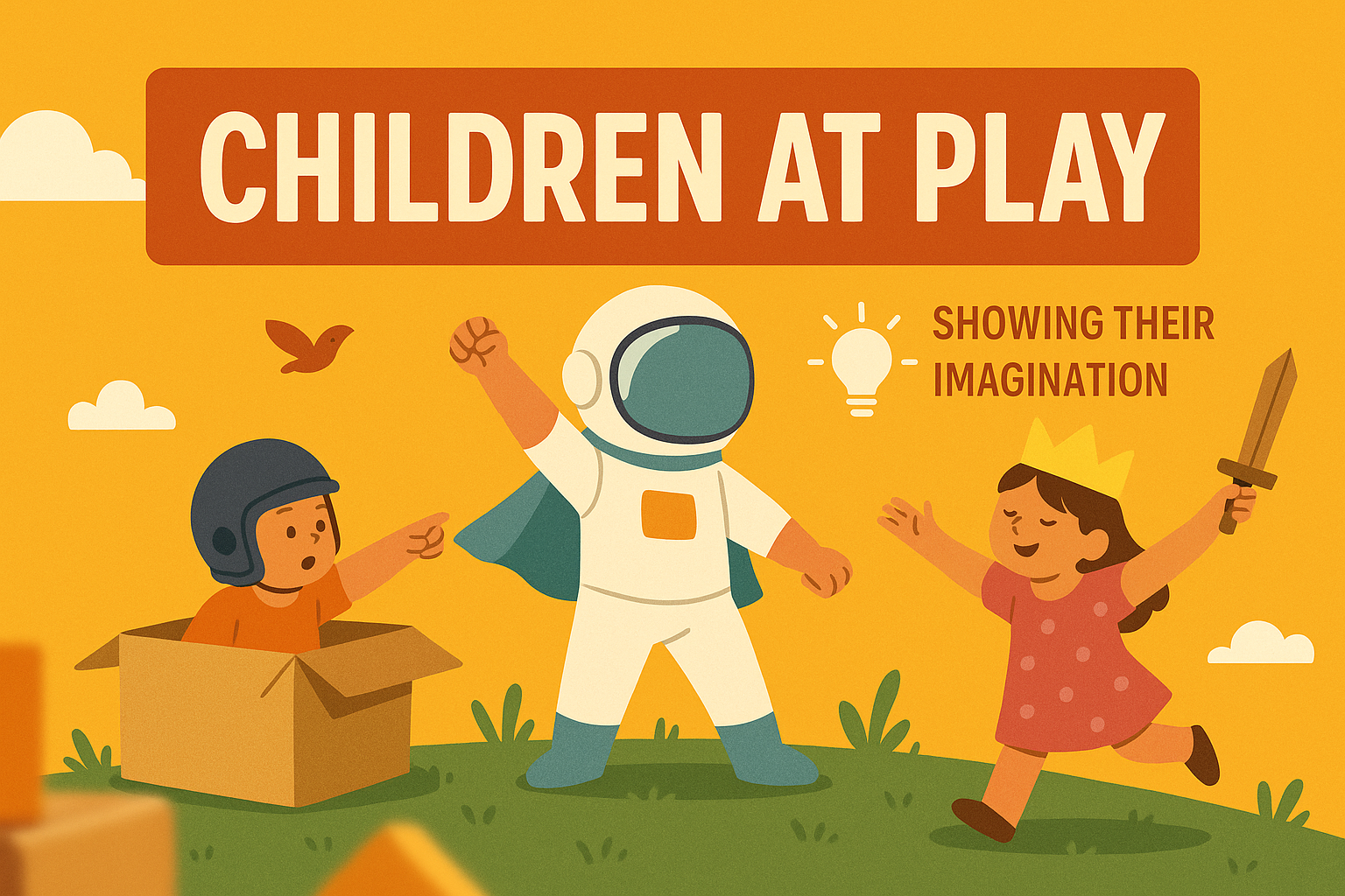 Vibrant and engaging illustration depicting children playing and using their imagination, perfect for educational or children's content.