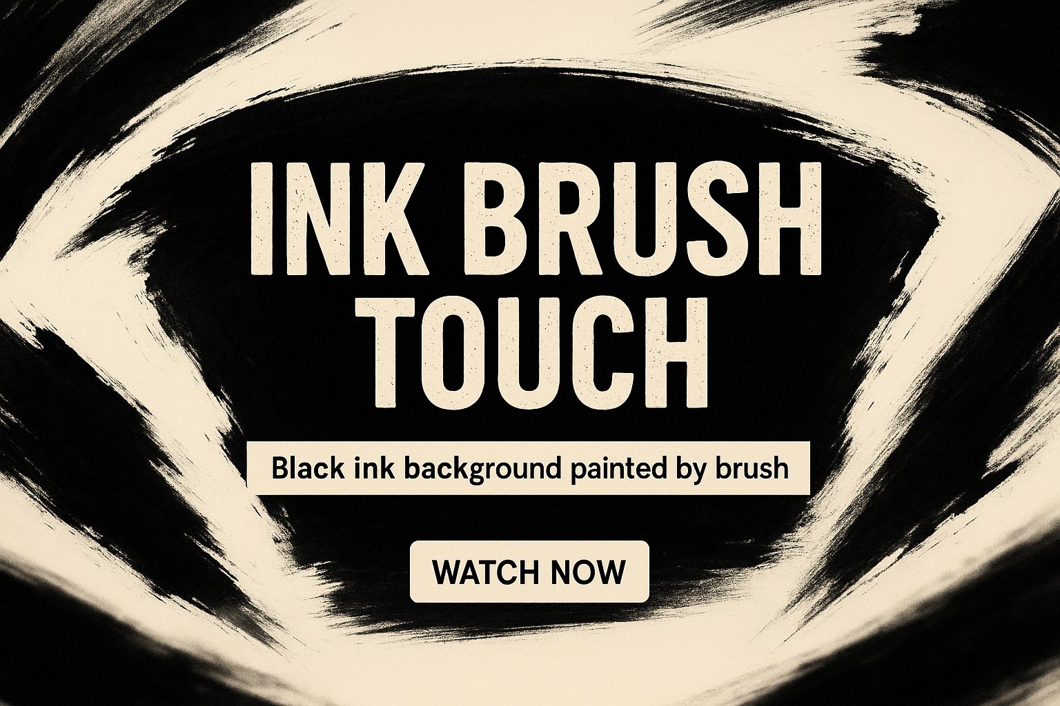Stylish graphic featuring a black ink brush background with bold typography, ideal for video promotions or creative showcases.