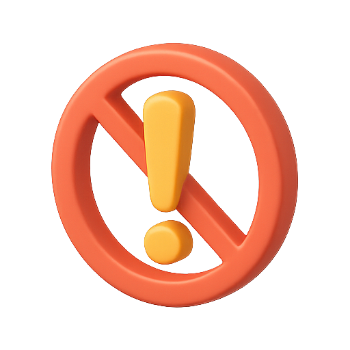 3D graphic of a warning symbol enclosed in a prohibition circle, designed for alerts or notifications. Ideal for use in digital interfaces and cautionary messages.