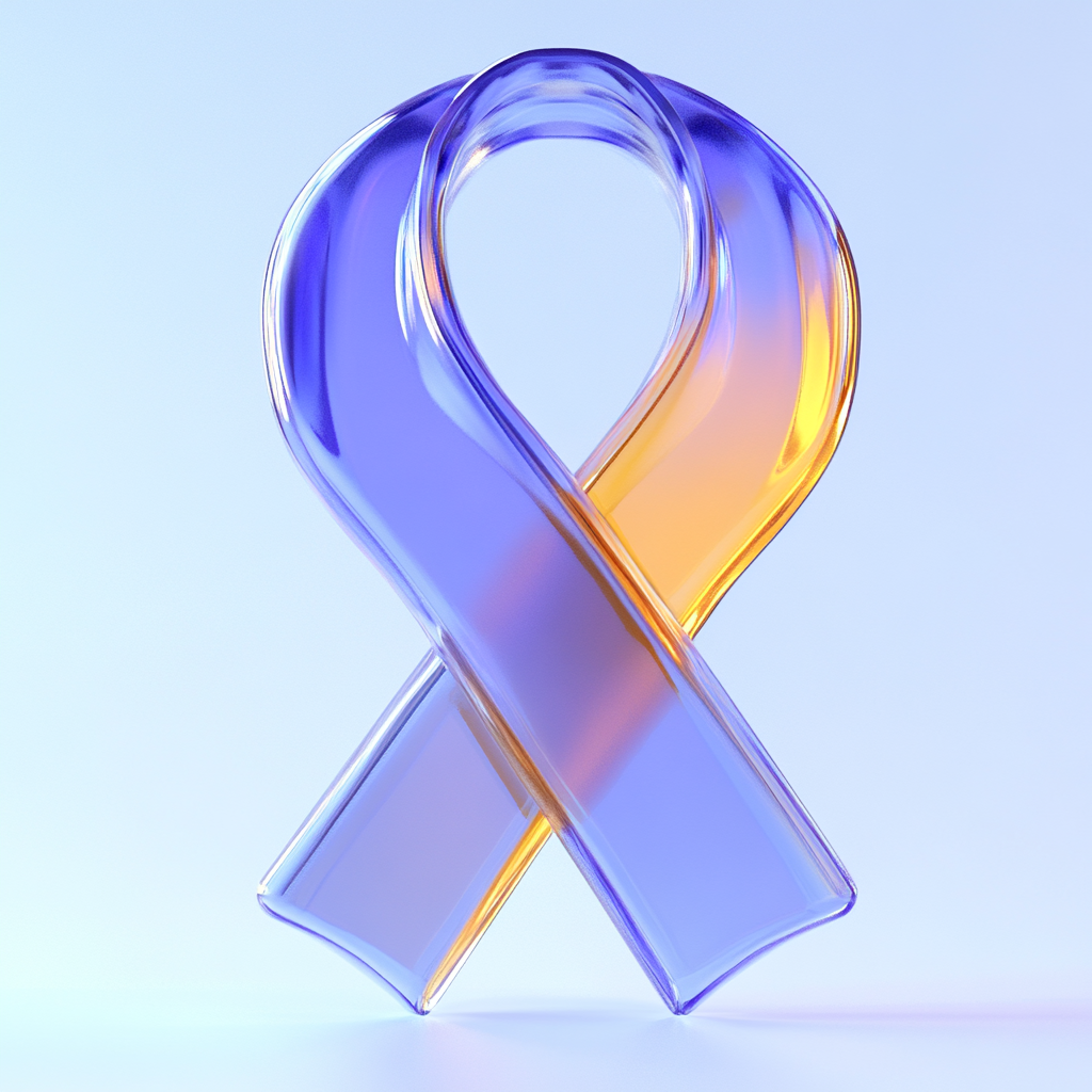 Stylized 3D glass ribbon icon featuring a gradient of blue and orange hues. Suitable for awareness campaigns, social media, or branding efforts.