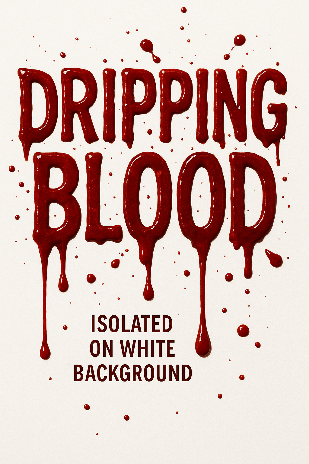 /Collection: /by davooda/Type: PNG/A striking graphic featuring the phrase 'Dripping Blood' in a bold, dripping font. The isolated design on a white background enhances its dramatic and thematic appeal, suitable for horror or Halloween-related content.