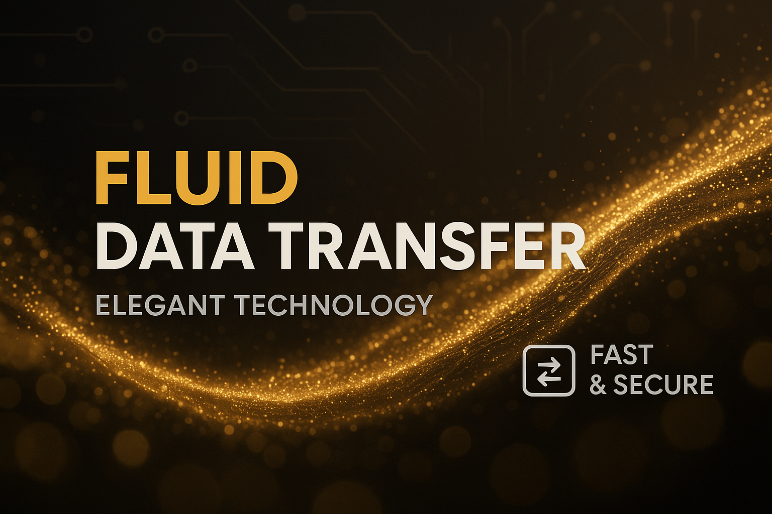 A sleek and modern graphic illustrating data transfer with a fluid design and elegant technology theme, ideal for tech-related presentations or marketing.
