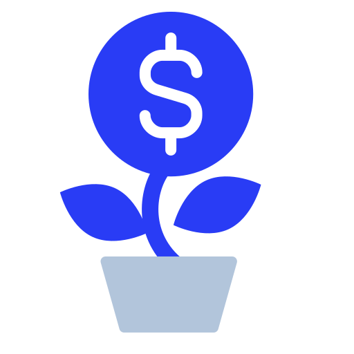 polish-blue simple icon: financial growth, money tree, investment, growth, finance