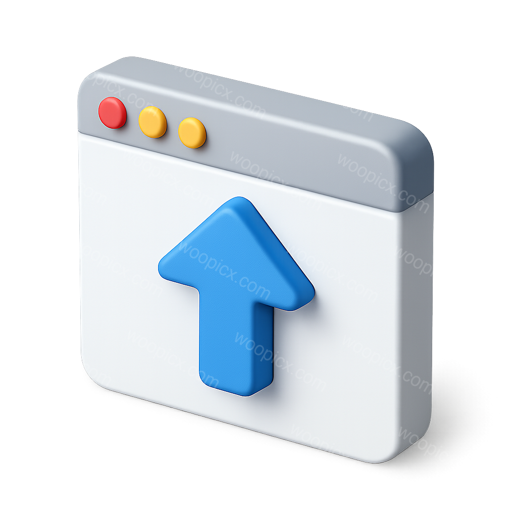 /Premium/Collection: /by davooda/Type: PNG/A stylized 3D icon of a window featuring an upward-pointing arrow. The design is isometric and volumetric, showcasing a modern aesthetic with a transparent background.