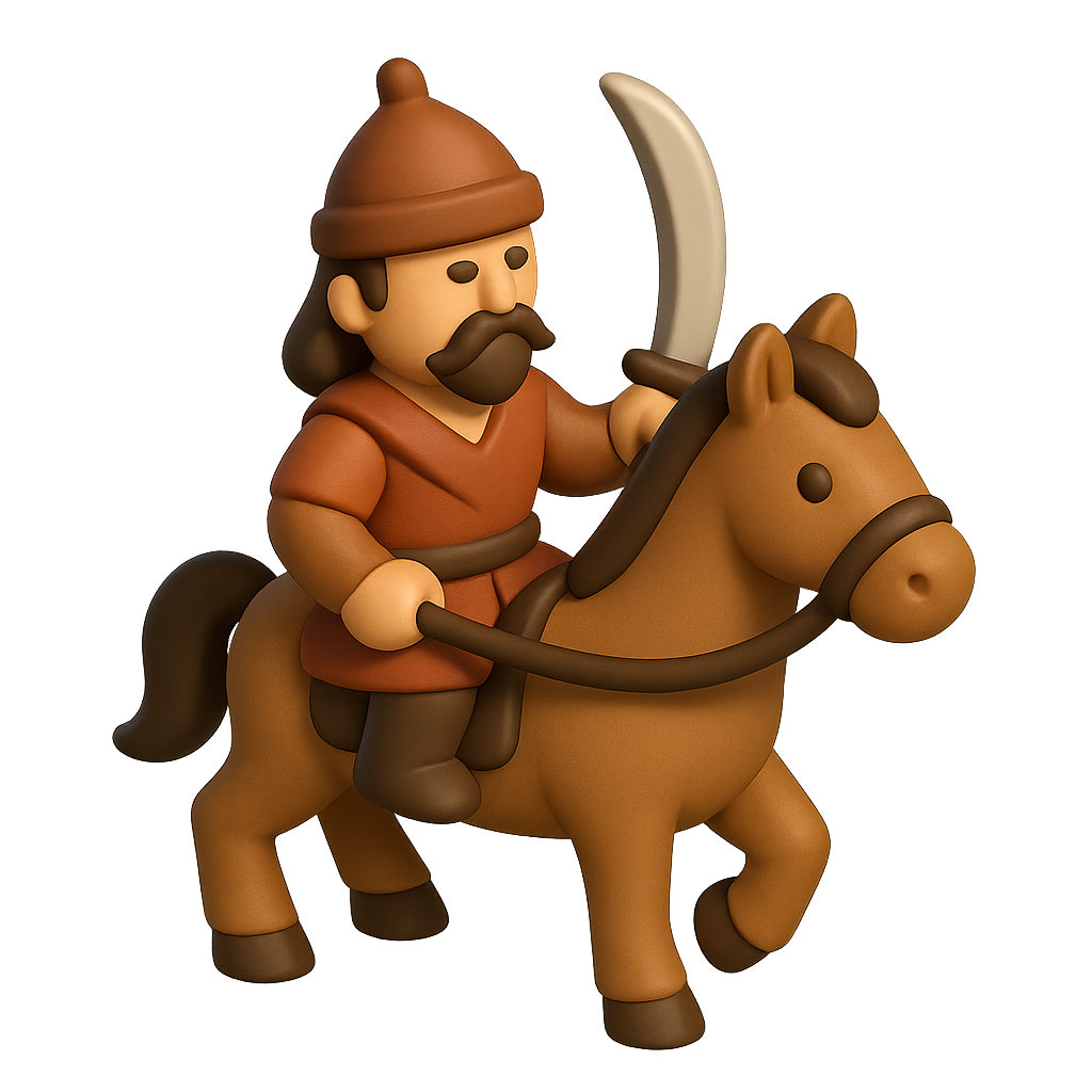 3D Icon of Attila on Horseback with Sword