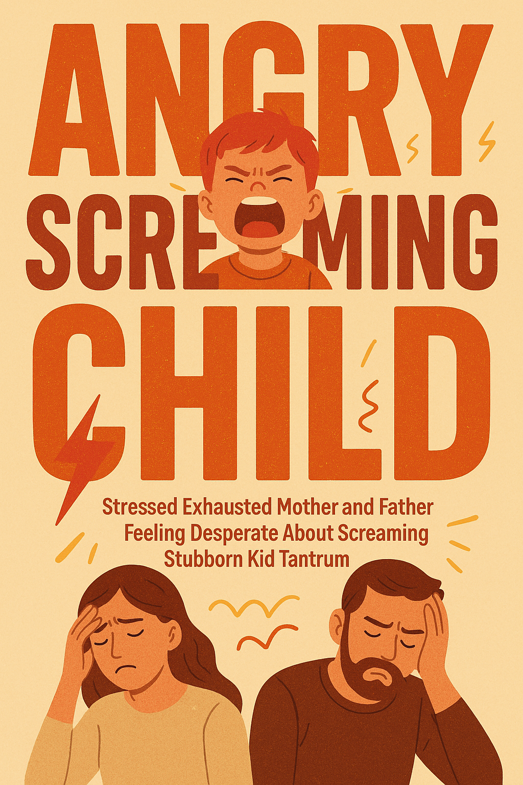 Illustration of Frustrated Parents with Tantruming Child