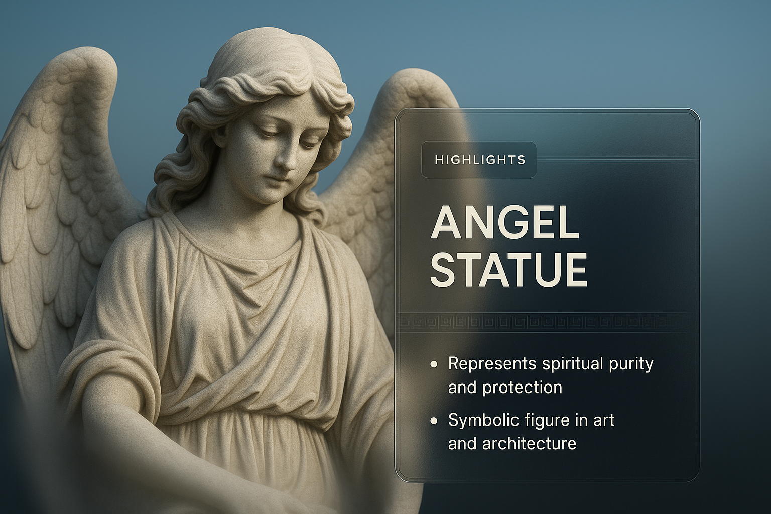 Elegant Angel Statue with Gradient Background and Text Overlay