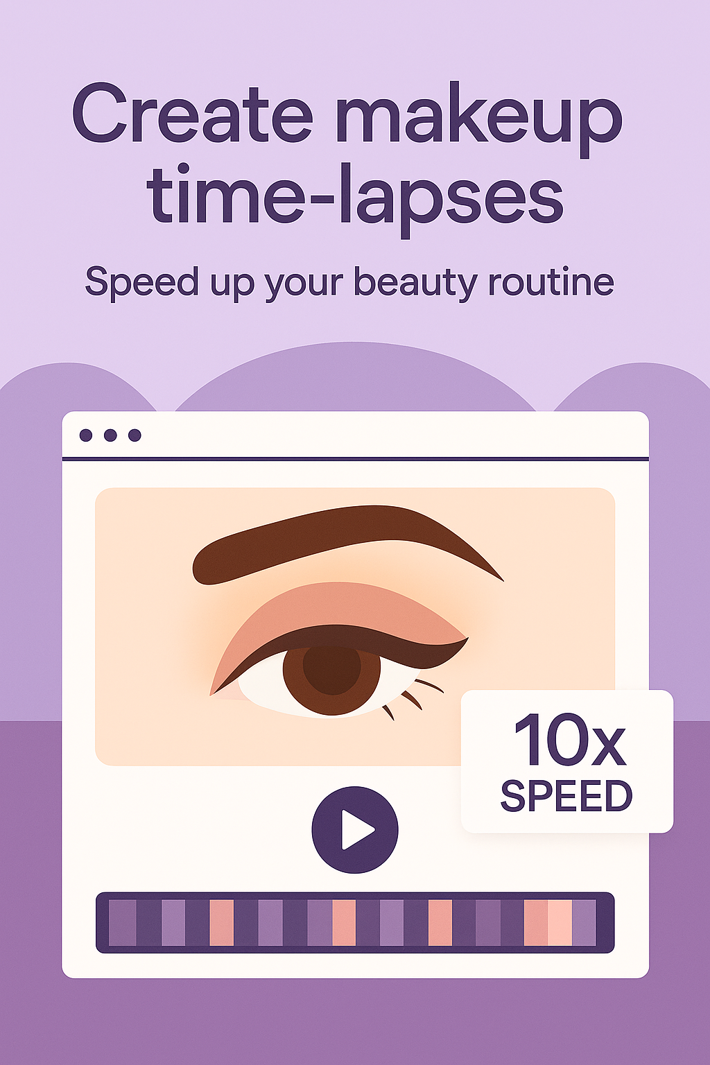 Engaging graphic promoting makeup time-lapse creation, featuring a stylized eye and video player elements ideal for social media or beauty blogs.