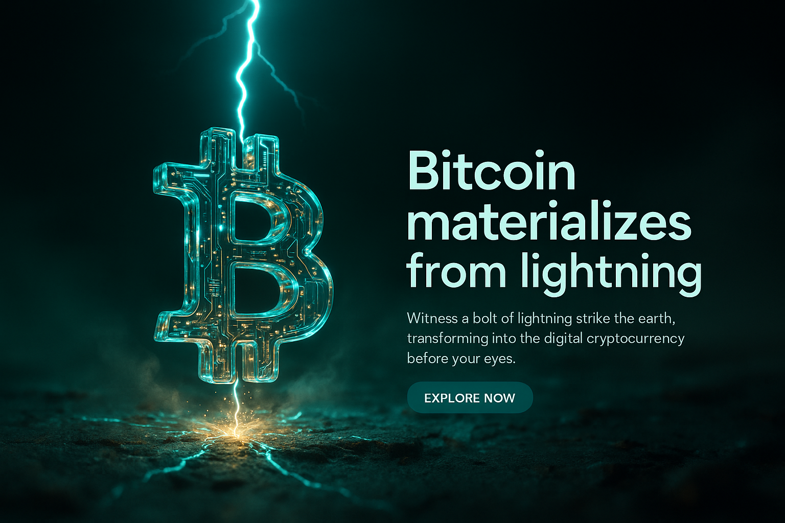 Bitcoin Emerges from Lightning Strike in a Hyperrealistic Scene